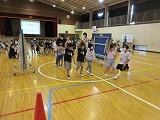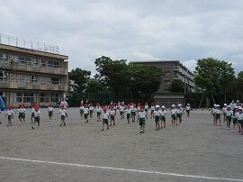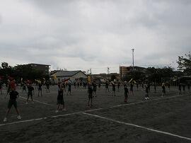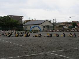5年生が準備運動をしています。 6年生も準備運動をしています。