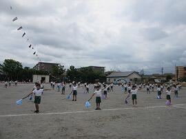 いよいよ明日は、『第40回の運動会』です。朝、登校時に局地的に大雨が降りました。松一小の校庭は、比較的水はけはいいのですが、ところどころ、少し水たまりができました。なかよしタイムと昼休みは、校庭を使用しないで乾かしました。