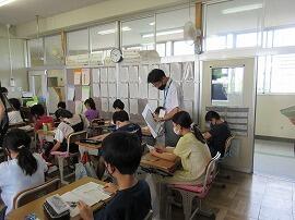 今日は、4年生と5年生が『内科検診』を行いました。「健康調査」をもとに児童の健康状況を学校医に伝え、診ていただきます。今回担当していただいた学校医は、中島先生です。
