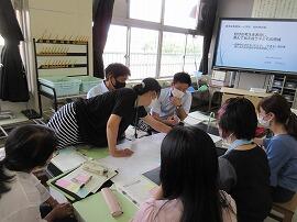 放課後に、研究協議会(全体会)を行いました。グループに分かれて意見を出し合い、考えをまとめていきます。