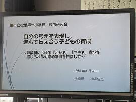 今日は、『第1回校内授業研究会』を行いました。本校は、今年度から算数科の研修を中心に、『自分の考えを表現し、進んで伝え合う子どもの育成 ~算数科における「わかる」「できる」喜びを感じられる対話的学習を目指して~』というテーマのもと、研修を進めています。今回は、講師に、柏市教育委員会指導課の指導主事の柳澤先生をお招きし、授業を参観後、御指導いただきました。