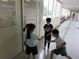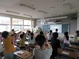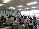 自分の行ってみたい国をお互いに紹介してから、「じゃんけん」です。負けたら、勝った人の後ろについて「じゃんけん列車」です。みんな夢中になって活動していました。