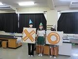 そして、「1~3位決め」です。学年代表戦では、じゃんけんに勝って見事「1年生」が1位になりました。さて、総合順位は・・・。各クラスの勝ち数を集計しています。集計をしている間に、◯✕クイズです。「松葉一小にいるうさぎの数は、4羽である。◯か✕か。」「正解は、・・・。」