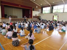 今日は、『1学期の終業式』でした。青木校長先生は、「目標を立てて、取り組んでいるかどうか」と、「3つの約束」について話をしました。「4月の始業式の時に皆さんにお願いしたことを覚えていますか?」さらに、「明日から、長い夏休みに入ります。夏休みは自分の知らないことを調べるチャンスでもあります。ぜひ、身近なことについて調べてみてください。報告を楽しみにしています。」と子どもたちに話しました。