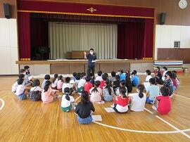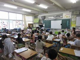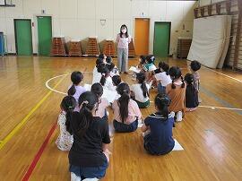 4組は、図書館指導員の野崎先生が、「読み聞かせ」をしていました。