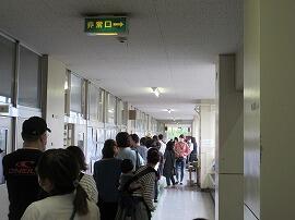 廊下で4年生の「学年の1位決め」です。理科室に各学年の1位の子が集まりました。
