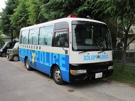 松葉第一小に来ている『移動交番車』です。マイクロバスタイプです。