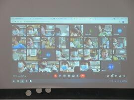 今日は、5・6年生が『国際交流会』を行いました。ねらいは、柏市の沼南庁舎大会議室にいるALTと松葉第一小学校の教室を「オンライン」でつないで、英語による児童とALTの「双方向型コミュニケーション」の機会を創るものです。子どもたちは、真剣にALTの質問を聞いて、答えていました。