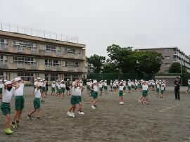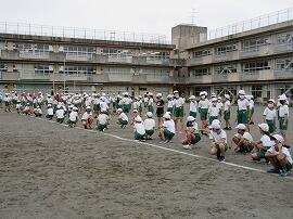6年生が先にトレーニングの手本を見せています。