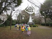 予定時刻よりも早めに『アンデルセン公園』に到着し、中を歩いていくと、大きな像がありました。「平和を呼ぶ」像です。この像は、船橋市の平和都市宣言記念のシンボル像として、岡本太郎さんが制作したものです。