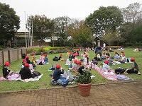 一通り見学をした後は、お待ちかねの「お弁当タイム」です。芝生のところで食べました。