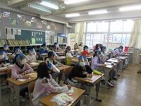 今日は、5校時に『教科専門指導員』の久保先生が、「体育の授業参観」を行いました。単元は、「跳び箱運動」です。「真っ直ぐに台上前転を回ろう」の学習を展開しました。他の学校の先生も参観に来ました。ありがとうございます。