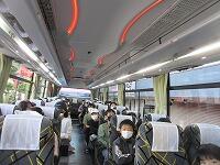 健康観察後、バスに乗って出発です。行き帰りのバスの中では、DVDを観て過ごしました。