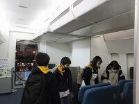 博物館の中に入ると、左手に飛行機の大型模型が目に入ってきました。旅客機の各室コーナーがありました。子どもたちは、楽しそうに見学していました。