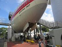 館外には、飛行機の機首部分の展示があり、車輪の格納の様子がわかりました。