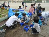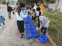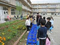 今日は、1年生が生活科の「こんどは なにを そだてようかな」で、球根を植えました。「チューリップ」と「クロッカス」と「ヒヤシンス」です。春に草花や野菜を育てた経験をもとに、秋まきの種をまいたり、球根を植えたりして、意欲を持って世話をすることがねらいです。土の深さに気をつけて植えました。どんな風に花が咲くのか今から楽しみです。