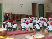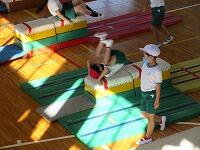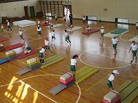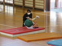 「マットを重ねた場」で、「前転」の練習です。「台上前転」は、手のつき方に気をつけて発表しました。自分の技能に合っためあてを持って、「練習の場」を選び、上手に「台上前転」をすることができましたか?