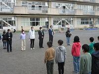 次に、「今月の生活目標」について、体育主任の岩田先生からお話がありました。「今月の目標は、進んで体力づくりをしようです。」持久走の練習について、「目標を立てて、取り組んでください。感染症対策もしっかりと行います。健康観察がとても大事です。しっかりと行ってください。金曜日からの練習を頑張りましょう。」と話しました。