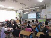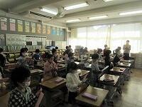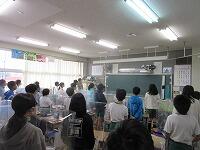 最後に「校歌」を歌いました。音楽主任の野﨑先生は、「今日は、伴奏のCDで校歌を歌いましょう。今月は、音楽発表会があります。皆さんの発表が楽しみです。」と子どもたちに話しました。