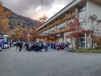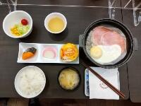 朝食は、「ハムエッグ」です。ご飯のおかわりもできました。ホテルでの出発式を行い、今日は、この後、「竜頭の滝」と「中禅寺湖」と「華厳の滝」に向かいます。
