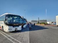 事故渋滞のため、予定より30分遅れて到着しました。最初のトイレ休憩です。みんな元気です。