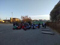 全体で今日の「試走」の説明を聞いています。ゴールした後は、・・・。