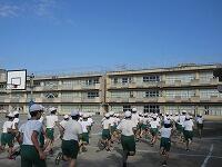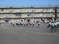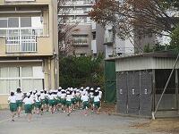 校舎の裏側コースを走り、校庭に戻ってきました。