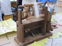 千歯こき、箕(み) 千歯こきで脱穀します。 唐箕(とうみ)