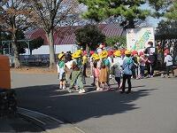 「ありがとうございます。」「さようなら」と、警察官に進んであいさつする子どもたちもたくさんいます。「さようなら」「気をつけて帰ってね。」