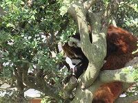 「レッサーパンダ」が木の上にいました。「どこにいるの?」「あ、いたいた。あそこ、あそこ。」