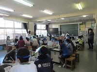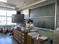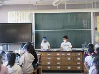 児童会の担当が、始まる前に理科室で、リハーサルをしていました。