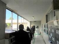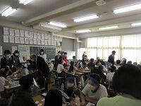 体育館に入って手指消毒と検温をしてから受付をします。いつもは、5年生や6年生の誘導係の子どもたちが、案内をするところですが、コロナ禍の状況のため、昨年度と同様に、教職員で対応します。今年は、3グループに分け、さらに3・4人の小グループを作って保護者と一緒に、(歯科)→(内科)→(聴力)→(視力)→(簡易知能検査)→(面接)の順で、検査会場を移動しました。