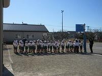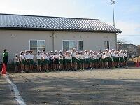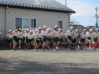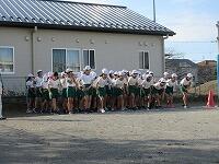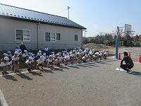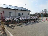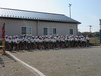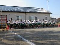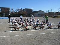 走り始める前にクラスごとで準備運動です。しっかり体をほぐします。