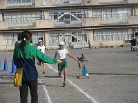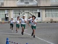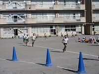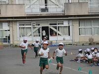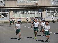 合図に合わせて、元気よくスタートしました。低学年は、小トラックを、中学年は、中トラックを、高学年は、大トラックをそれぞれ走ります。
