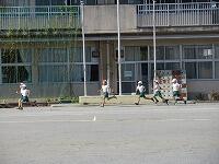 校舎の裏側コースを走って、校庭に戻ってきました。