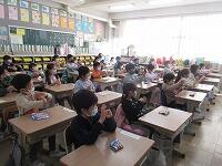 「第4位は、2クラスあります。」「そして、第1位は、3クラスあります。1年5組、2年4組、5年2組です。第1位になった皆さん、おめでとうございます。」「これで結果発表を終わります。」