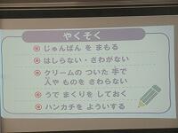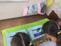 しっかり洗えていなかったところはどこか確かめて、「あわあわ手あらいのうた」に合わせて手の洗い方を復習しました。御家庭でもきれいに手を洗えるようになりました。