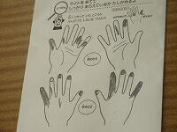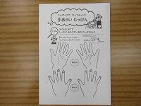 2~3回ぐらい洗い直してみて、ようやく手がきれいになりました。ワークシートに汚れがついていたところを記入しました。