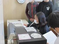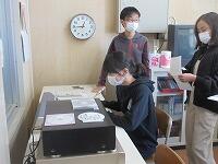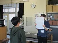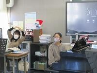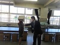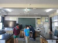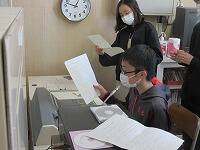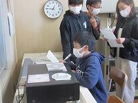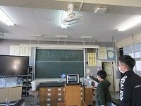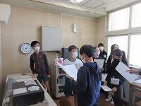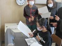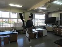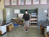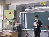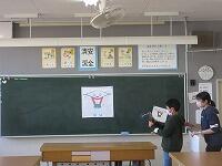 児童会の担当が、始まる前に理科室で、リハーサルをしていました。