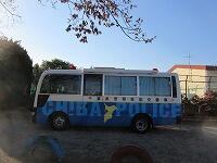 今日は、『移動交番車』が来ました。「巡回パトロール」や「子どもの見守り活動」等で、児童の下校時刻に合わせて、下校支援のために市内の学校を回っています。今回は、1名の警察官の方が松葉第四公園前を担当しました。