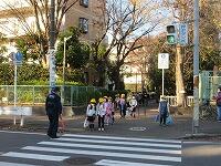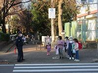 横断歩道の所に立っている警察官を見て、ある子から、「あれ、何かあったのですか?」との言葉が・・・。『移動交番』は、月に1回、子どもたちの下校の見守りをしていただいているのですが、よくわかっていない子もいました。「今日は、移動交番だよ。みんなが安全に下校できるように見守っているんだよ。」と話すと、「あ! じゃあ、移動交番の車が来ているんだ。」と気づいてくれました。
