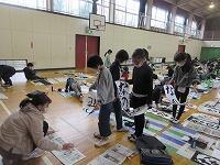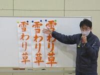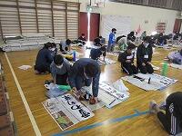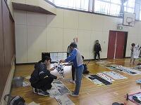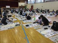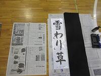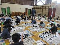 5年生の課題は、「雪わり草」です。新聞紙を広げて、書く準備を進めています。