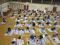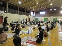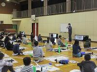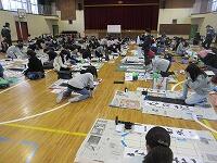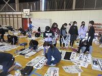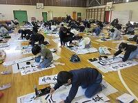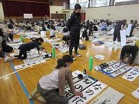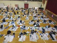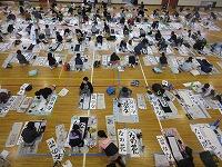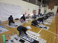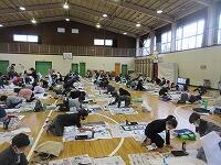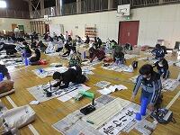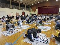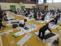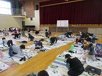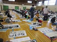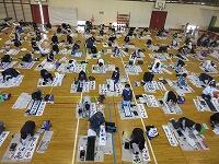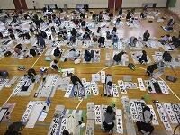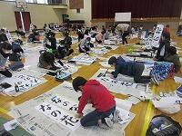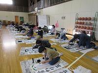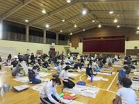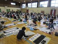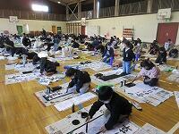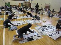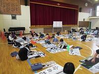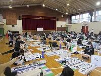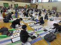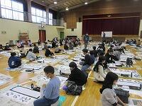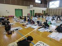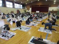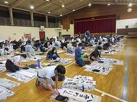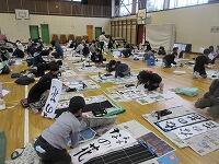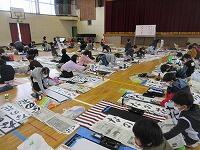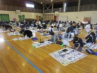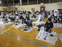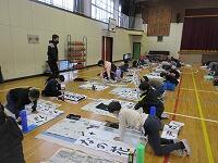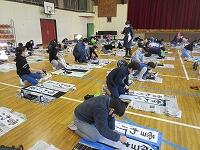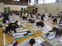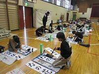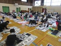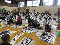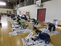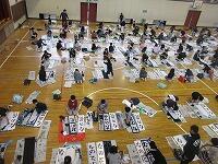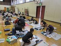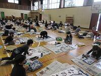 今日は、昨日の4年生に続き、5年生が体育館で『書き初め練習』を行いました。