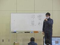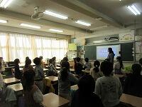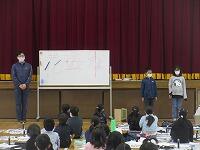 次に、生徒指導主任の平良先生から、「冬休みの生活」について、話がありました。途中、生活委員会が作成した「冬休みの過ごし方」のビデオを上映しました。