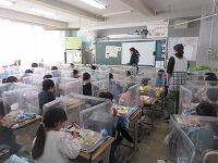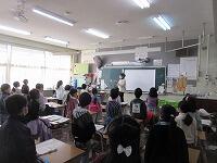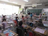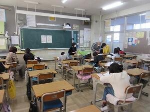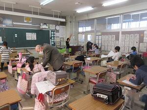 最後は、「校歌斉唱」です。音楽主任の野﨑先生から、「元気に歌いましょう。」と話がありました。1年生の教室へ行ってみると、体を動かしながら、元気に「校歌」を歌っていました。