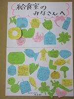 4年3組の子どもたちが、給食室の皆さんへメッセージをプレゼントしました。大変素晴らしいことですね。栄養士の加藤先生も、とても喜んでいました。給食室の皆さん、おいしい給食をありがとうございました。3学期もよろしくお願いします。