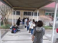 雨がぽつぽつと降ってきたので、通路のところで受付をしました。