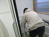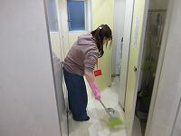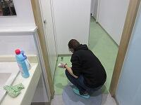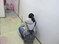 廊下や流しのところも丁寧に磨いています。ゴミが取れるとスッキリします。拭き掃除にも気合が入っています。