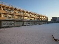 今朝の様子です。校庭には、雪が積もっています。「雪遊び」ができそうです。