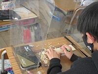 今、6年生は、どのクラスも卒業に向けて『卒業制作』に取り組んでいます。今日2月9日は、卒業まで、「あと35日」となりました。「わたしはデザイナー 12さいの力で」というテーマで、「オルゴール箱」の制作をしています。板を掘って組み立て、仕上げていきます。どんな「オルゴール箱」が完成するのか楽しみです。
